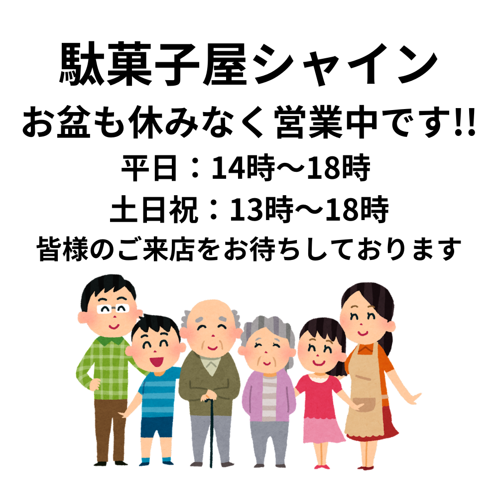 お盆も通常通り営業しています 投稿日: 8月 9, 2025 | 投稿者: 社長 駄菓子屋シャインはお盆も通常営業中です😊ご家族そろってぜひお越しくださいね❤️営業時間は通常通り平日14時~18時。土日祝13時~18時です。 カテゴリー: お知らせ 前の投稿 2025年3月6日(木)より平日営業再開します&駐車場追加について 新しい記事がありません ブログに戻る